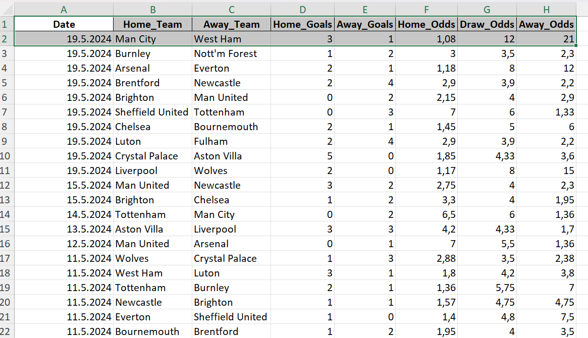 • Historical_matches-taulu: Otteluhistoria