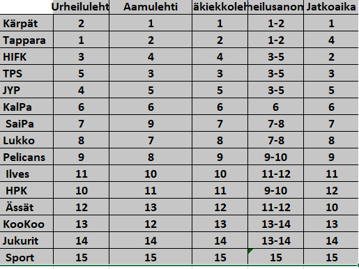 HIFK voittaa runkosarjan sekä koko paskan, mutta kauden ylisuorittaja kertoimiin nähden on Lukko.