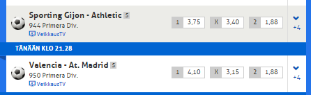 Aiemmin Fissin sivuillakin oli noi Veikkauksen ilmoittamat matkat.