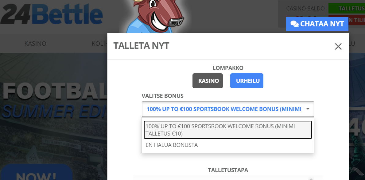 E: tallettaessa pitää valita ensin vedonlyönti (oletuksena kasino) ja siitä tämä tarjous :lol: