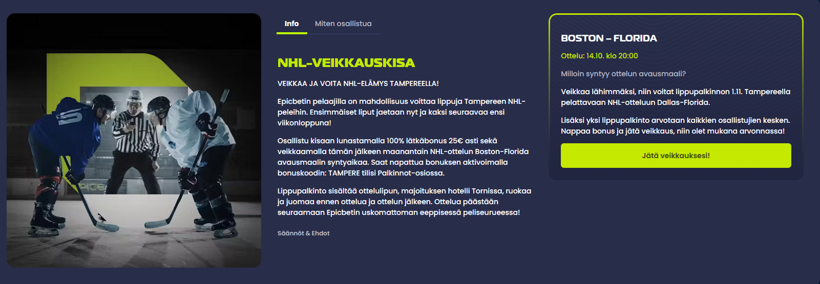 Tässä vielä tarkemmat infot Epicbetin NHL veikkauskilpailusta.