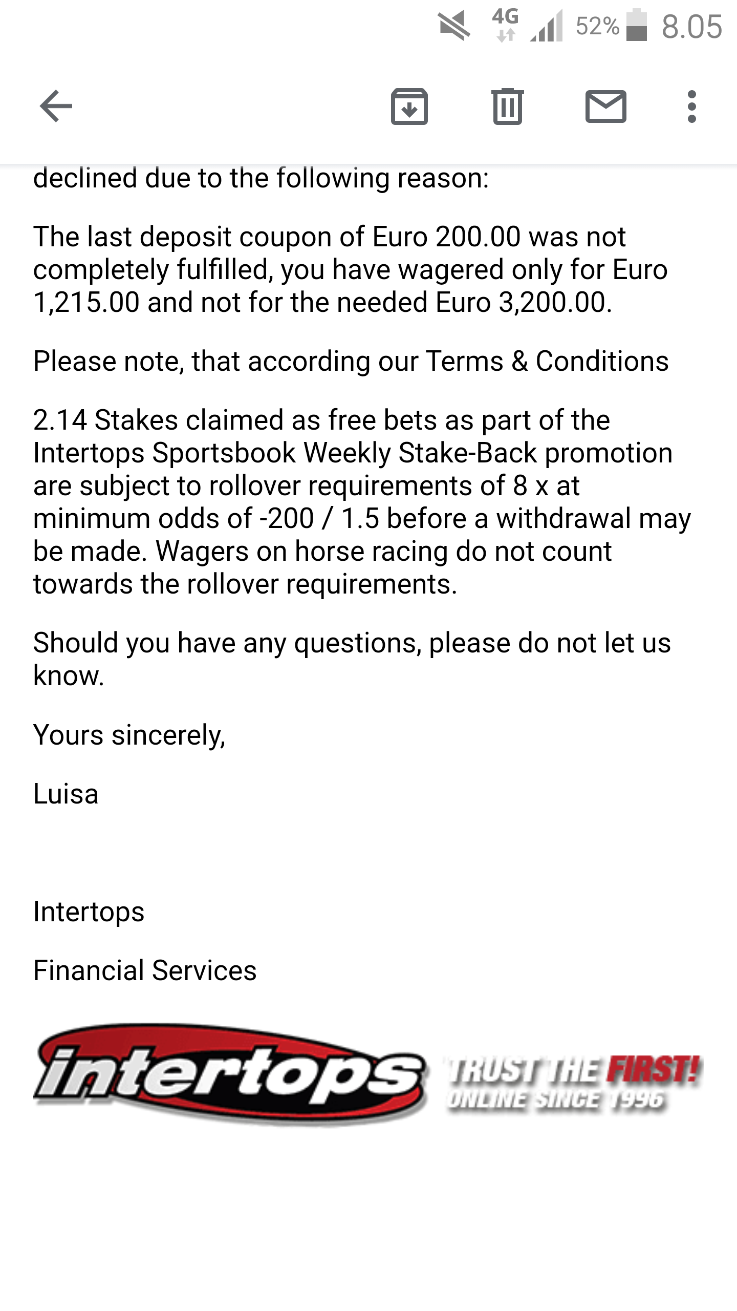 Intertops rules 2.6. and 2.7. apply to all sign-up offers.