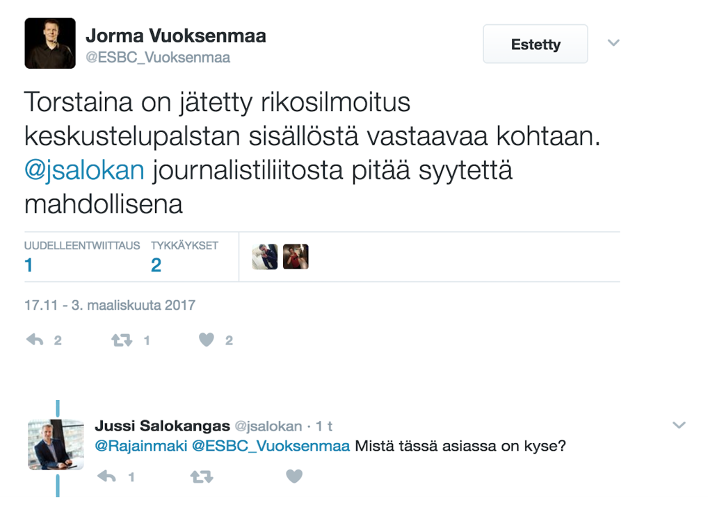 ESBC_Vuoksenmaa: @jsalokan journalistiliitosta pitää syytettä mahdollisena