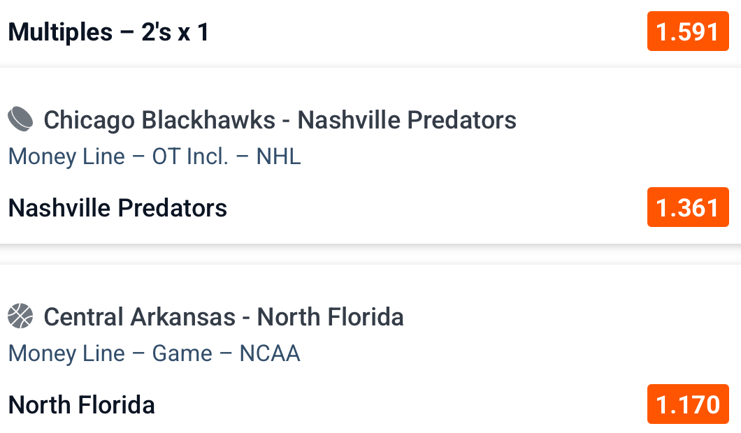 - Central Arkansas vs North Florida/Chicago Blackhawks vs Nashville Predators