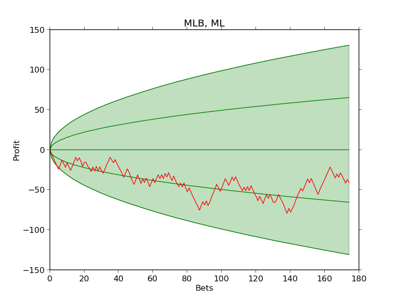 Pieni välikatsaus MLB:n moneylineista, jotka ovat toistaiseksi sujuneet eniten alle odotusten. Kuvioissa on mukana kaikki kauden 2015 vedot, jotka eivät ole menneet pushiksi ottelun perumisen tai syöttäjän vaihtumisen vuoksi.