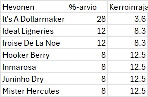 Numero Hevonen %-arvio Rajakerroin
