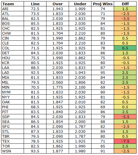 MLB Win Totals 2015