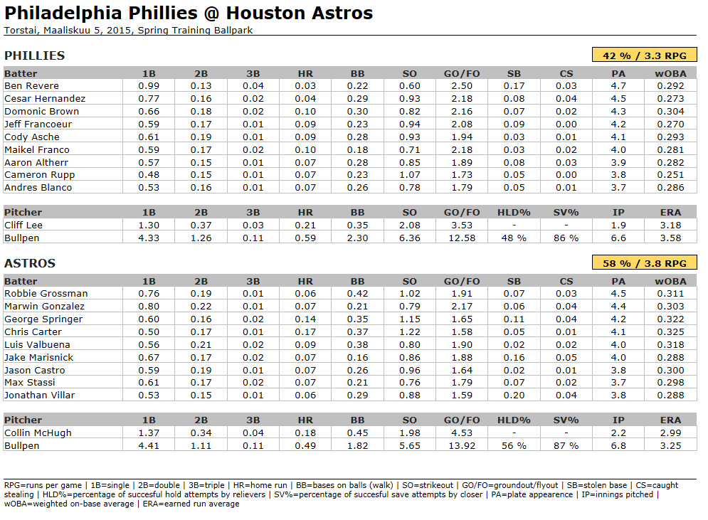 Vedonlyöntivihje: - MLB Spring Training 2015 - Philadelphia Phillies @ Houston Astros - peliaika päättynyt