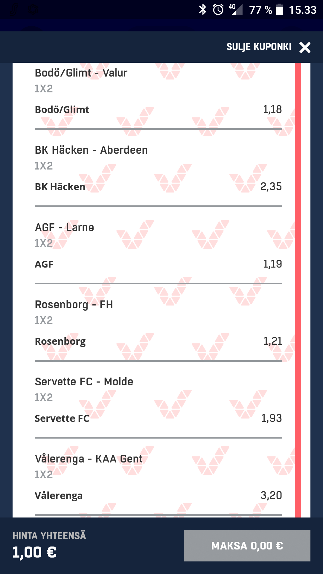 Vedonlyöntivihje: 31.5.2021 19:00 - EM kisat U21 - HollantiU21 - RanskaU21 - peliaika päättynytkohde HollantiU21 - RanskaU21 veto HollantiU21 kerroin 2.950 (Unibet) panos 1.82 yks.