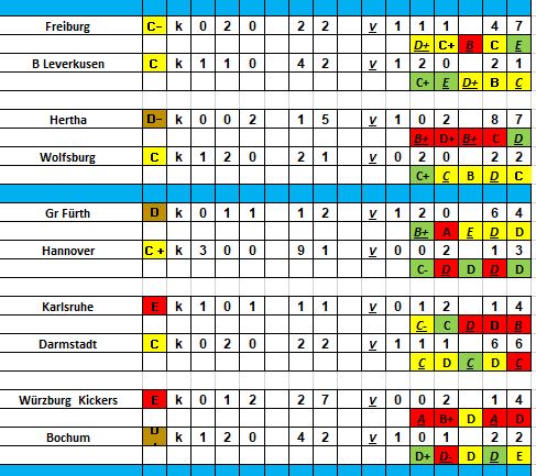 Auella ollut kova otteluohjelma viime peleissä, 1 2 2, mutta vastus sarja 1, 2, 3, 6, 8, vrt Darmstadt, 2 0 3, vastus sarja 5, 10, 11, 14, 16