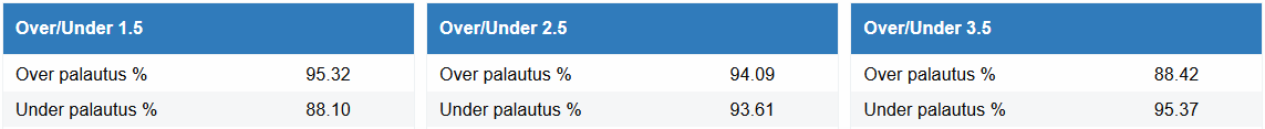 Vähän tilastoa over/under average kertoimista jalkapalloon ja näiden palautuksista mikäli näillä kertoimilla olisi lyönyt vetoja.