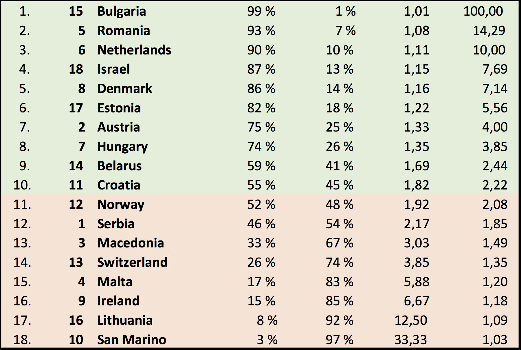 Israel top3 semi varmaan vielä saa jostain 4+