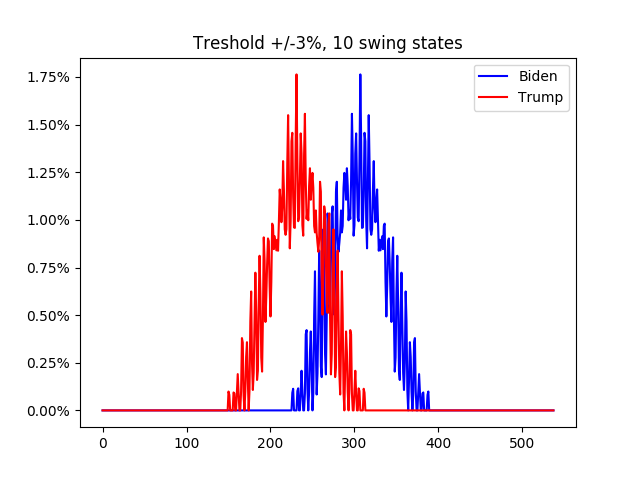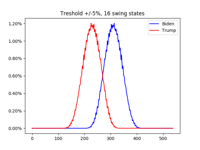 Kuten futiksessakin, vaaleissa täytyy myös nähdä "galluppien taakse". Nyt näyttää siltä että gallupit olivat liikaa kallellaan Bidenille ja odotusarvomielessä itsekin ylibetsasin Bideniä. Todellinen odotusarvo on kuitenkin suht' helppo laskea suht'koht tarkasti toteutuneesta äänijakaumasta johtuen juuri tuosta varianssin pienuudesta.