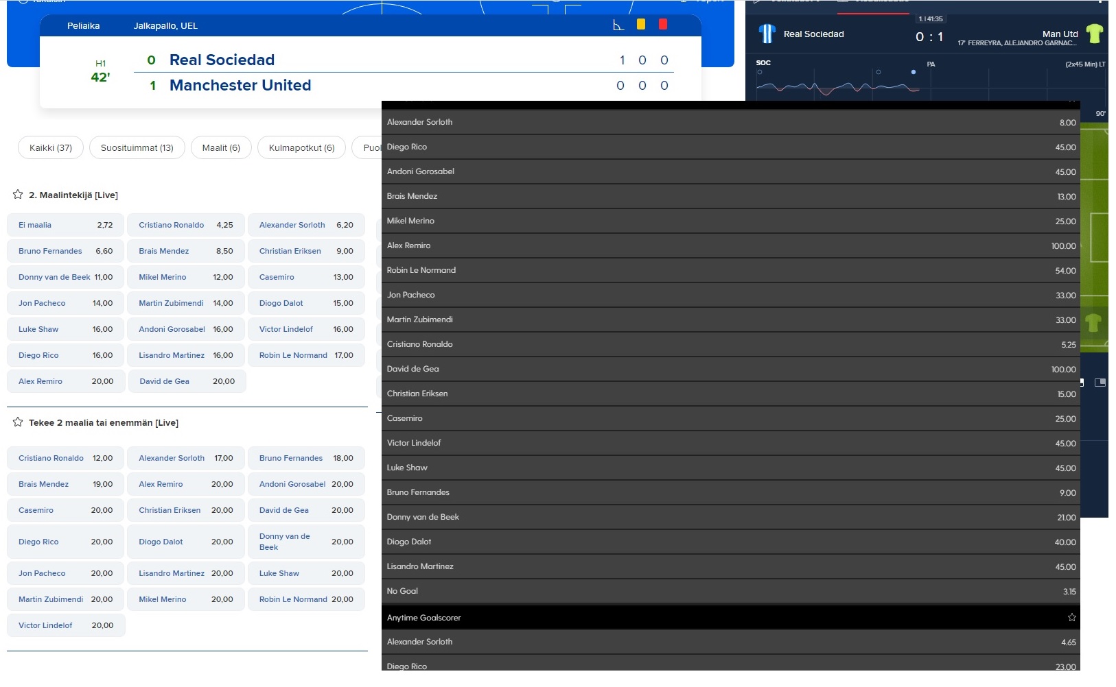 Veikkauksen livevedossa oli eilen peli Vitória Guimarães - Trofense, pelasin että kotijoukkue tekee 6:nen maalin peliä oli pelattu silloin 78min.