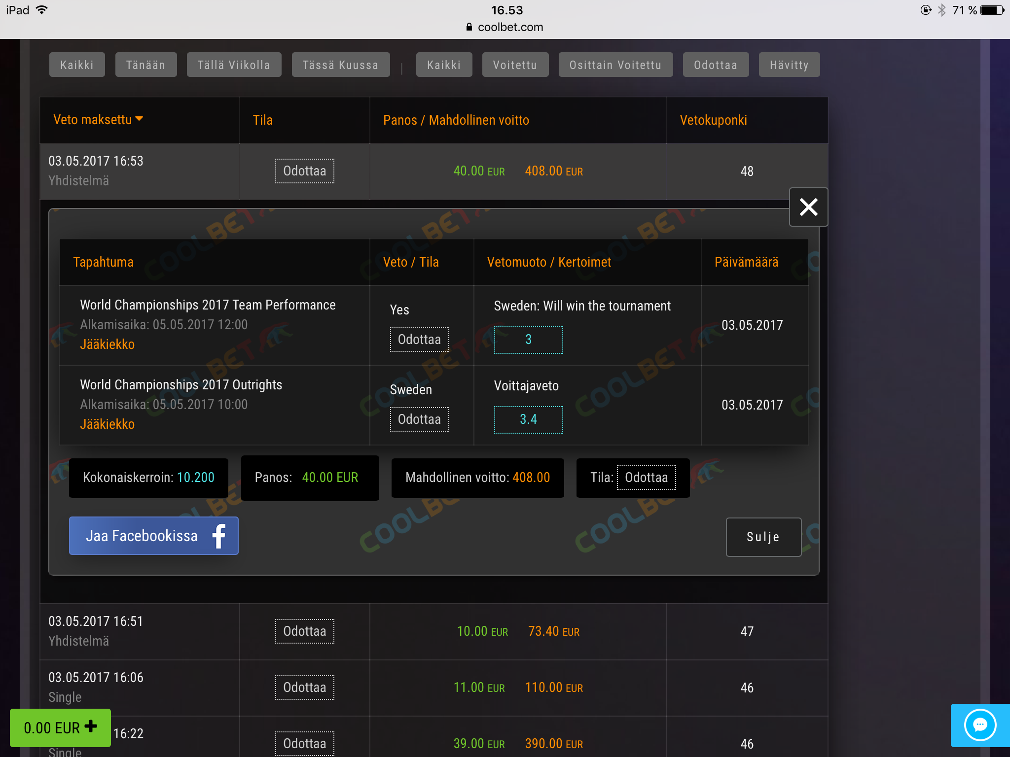 29.03.2021 19:34 <credit> Coolbetille tulee kuitenkin pelattua niin paljon, että se on huomenna hoidettu.