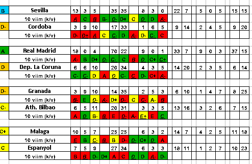 16. Osasuna, 8 6 11 27-35, k, 6 2 5 19-18