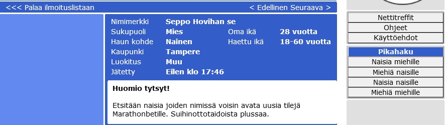 Re: Kevyitä sipasuja Seppo Hovin tapaan