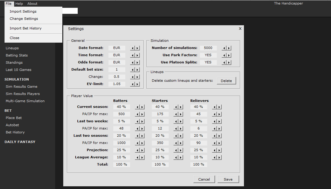 Kohta valmista. The Handicapper v3 mahdollistaa MLB-otteluiden vedonlyömisen oikealla valuutalla (iso kiitos S.Mäenalalle koodista). Myös automaattinen vedonlyönti tulee olemaan mahdollista. Tästä enemmän lähiviikkoina.