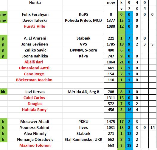 Numancia, viim 10 ott, 7* u 2.5 ja tehnyt 8 m, poissaolijoiden tehot; 2+0