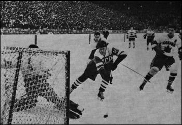 Vsevolod Bobrovin maali Kanada vastaan 1954 MM-kisoissa