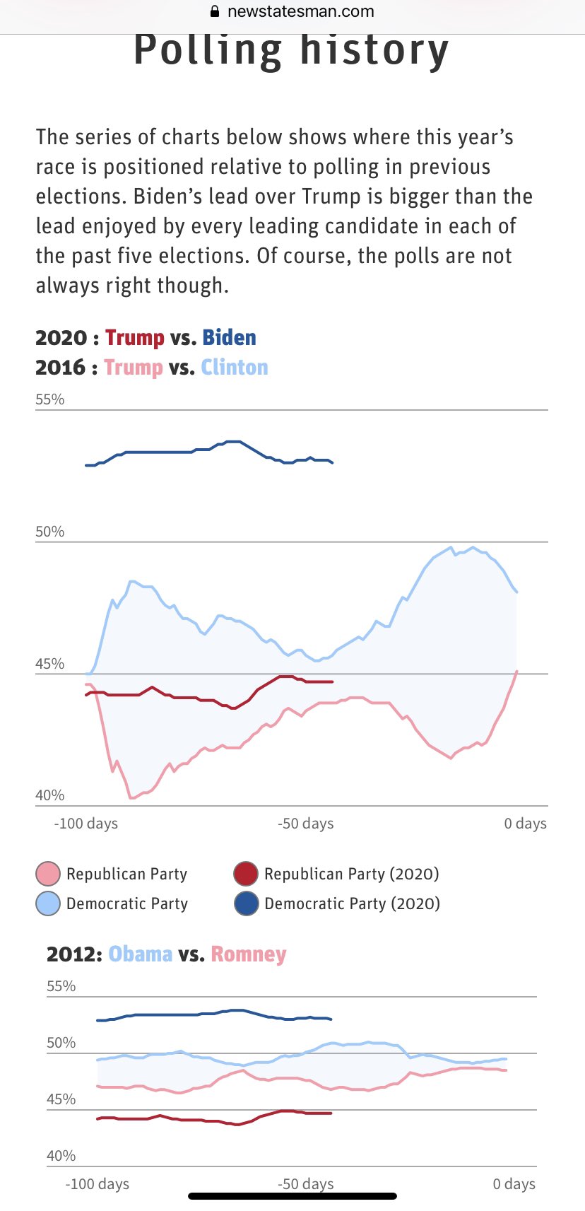 Bidenia puoltavat tietenkin pollit - näitä en ole juuri itse analysoinut, mutta yleisellä tasolla perillä siitä, että ne ovat muuttuneet keväästä radikaalisti Bidenin eduksi. Korona oli Bidenille täydellinen lottovoitto, sillä sitä jenkeissä ei ollut presidentillä mahdollisuuksia hoitaa mitenkään siedettävästi. Toki koronan kohdalla Trumpin idioottamaiset heitot ampuivat herraa jalkaan pahemmin kuin koskaan ennen, mikä on pahentanut tilannetta kansan silmissä. Joka tapauksessa keskeistä on koronan valtavat terveydelliset ja taloudelliset haitat, mitkä koskettavat todella suurta osaa jenkeistä. Pollien perusteellinen tutkiminen ja vertailu siihen, millaisia muutoksia niissä on pidemmällä aikavälillä nähty näin lähellä vaaleja on keskeistä varsinaista prosenttiarviota tästä tehdessä. On tietenkin hyvä muistaa, miten erilaisilta ne näyttivät vielä keväällä. Toinen oleellinen seikka on se, miten paljon jengi on ehtinyt jo äänestämään(käsitin jostain että äänestys jo alkanut) ja tulee äänestämään mahdollisimman aikaisin suhteessa vaalipäivään. Sitä pätevämpiä tämän hetken pollit oletusarvoisesti ovat. Ennakkoäänestyksen alkaminen varhaisessa vaiheessa on suuri etu Bidenille, sillä Trumpin toivo lepää hyvin suurilta osin vastustajan huonossa esiintymisessä.