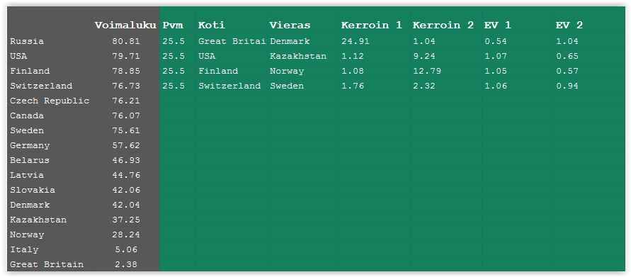 Vedonlyöntivihje: - Venäjä - Tshekki (ml) - peliaika päättynyt