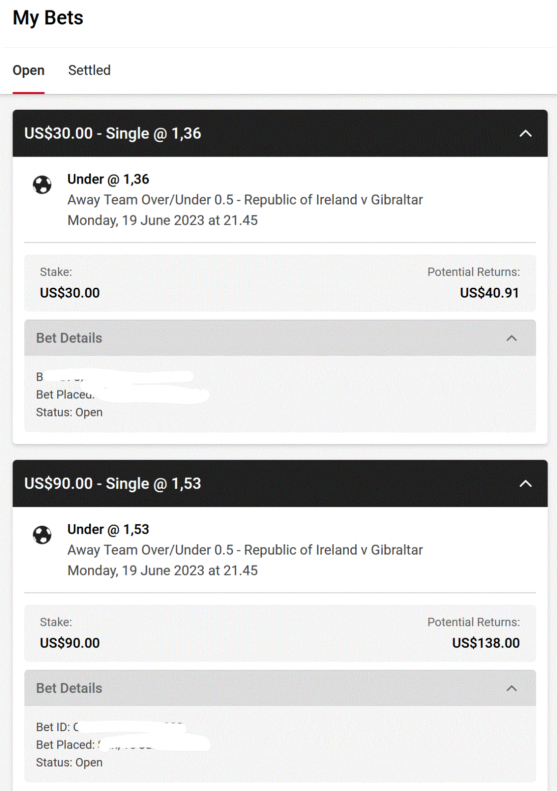 Tätä se matchedbetting käytännössä on,teoriassa helppoa rahaa ja panokset on tipsien mukaan kokoajan 1000-3000€,tosin kaikilla muilla tulee limput joka paikkaan,paitsi betfairille,jo paljon ennen ekaa 1000€ panosta,mutta kuvia niistä ei ole koskaan eikä kukaan pro käytä matched bettingiä koska sitä ei voi käytännössä toteuttaa kukaan muu kuin foorumin yksi sankari...