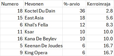 Lähdön 4 pelihevosten suuntaa-antavat arviot ja kerroinrajat :