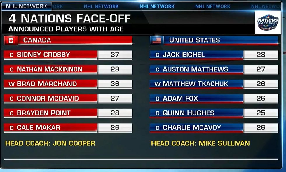 Stanley Cup-voittaja Floridalta valittiin turnaukseen peräti kahdeksan pelaajaa ja Vegasiltakin seitsemän pelaajaa. Ainoastaan Seattle ja Washington ovat tässä vaiheessa joukkueet, joista pelaajia ei turnaukseen valittu. Turnauksen vanhin pelaaja on 37-vuotias Kanadan Sidney Crosby ja nuorin kohta 20 vuotta täyttävä Ruotsin Leo Carlsson.