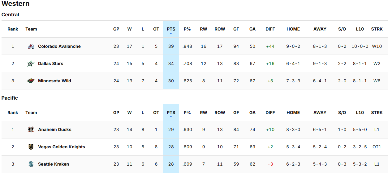Villikortti paikoilla tällä hetkellä Islanders ja Pittsburgh, molemmat yllättäen. Pittsburgh aloitti todella pirteästi uuden koutsin alaisuudessa, mutta hivenen on vauhti alkanut jo hiipua. Islanders on myös ollut siis yllättävän hyvä, Sorokin on löytänyt vireensä maalilla ja tietysti tuolla puolustuksessa loistaa tulokas Matthew Schaefer, taisi olla kuin kala vedessä heti ekasta vaihdosta asti. Islanders voi hyvinkin olla mukana tuossa pudotuspelikahinoissa loppuun asti.