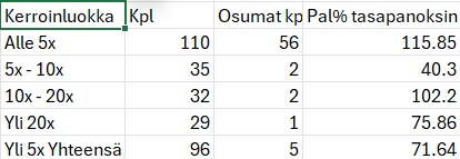 Vihjeet yhteensä: panokset 3.00, palautukset 3.48, tulos +0.48 yksikköä.