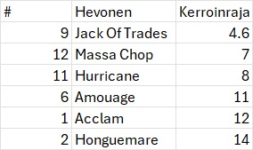 Jos pitää vielä soveltaa, niin kuvittelisin voittajan löytyvät nelikosta Borups Victory, Massimo Hoist, Combat Fighter ja Olly Håleryd. BV on suosikki ja Massimo haastaa. Jos ajavat toisensa pökerryksiin Combat Fighter ja O Håleryd poimii hedelmät