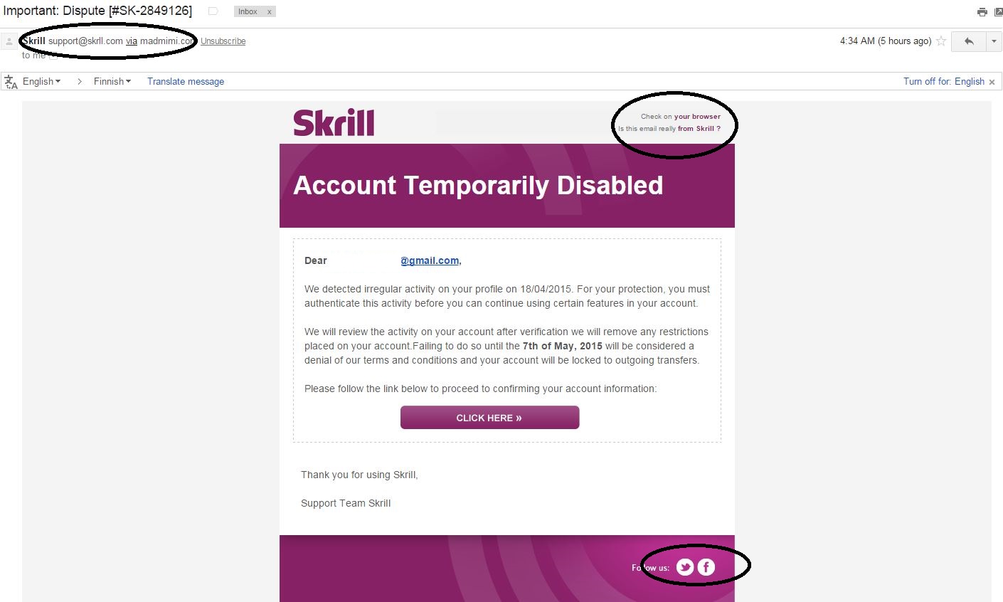 Below are some useful tips that will help you recognise genuine Skrill correspondence: