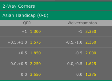Vedonlyöntivihje: - qpr-wolves, kulmat ahc - peliaika päättynyt