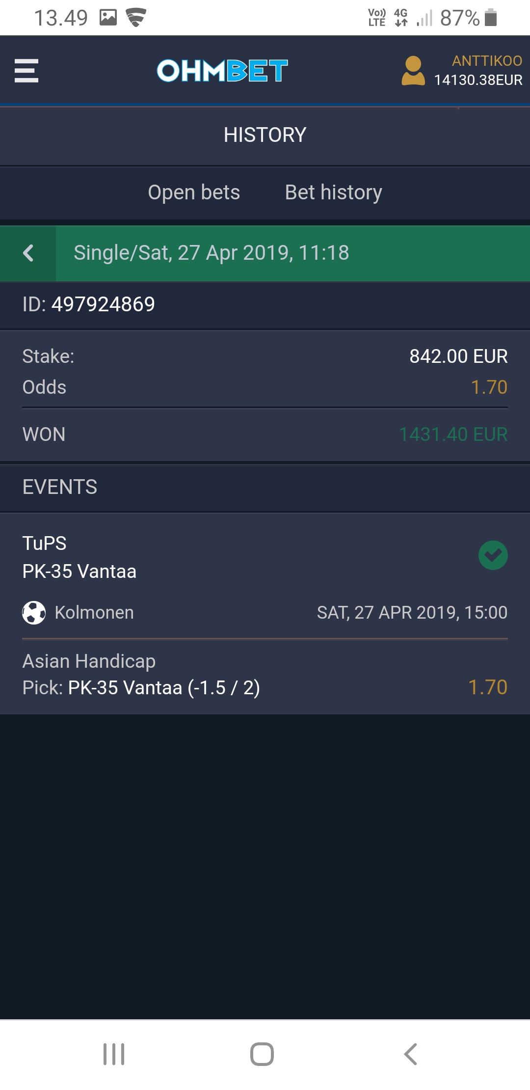 Jostain syystä kuitenkin juuri Ohmbet on ollut ainoa näistä, jonka kanssa minulla ei ole ollut mitään ongelmia! Ja meidän suhde on kestänyt jo monta onnellista kuukautta. :heart: Edes panostuksissa en ole huomannut rajoituksia, vaikka voittoja on tullut ihan mukavasti. Saattavat tarjota toisinaan jopa yllättävän korkeita panostuksia aivan marginaalilajeihin. Kertoimia julkaistaan ensimmäisten joukossa ja ne ovat usein varsin maukkaita.